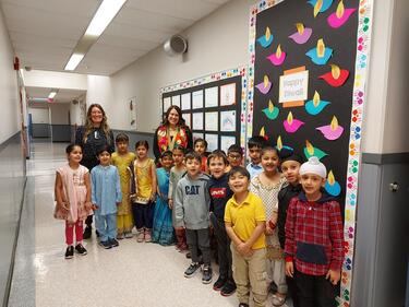 With so many obligations, it can be challenging to slow down and take the time to connect with people, but these connections are at the heart of everything we do. Building relationships and trust with all stakeholders results in individuals opening up and sharing their identities, thoughts, beliefs and culture with us. And a connection with culture, a large part of our identities, creates a strong and vital sense of pride. When we make an effort to celebrate cultural events, when children can see themselves represented at the school level, we are strengthening that sense of belonging that we hope all students can attain as they learn each day. Seeing the look of pure joy and surprise on the faces of the dancers and MC's at Clearbrook's Diwali Assembly this fall as they walked into the gym - dimly lit, but sparkling with hundreds of twinkle lights, paper luminaries, sarees, flowers and colour - was exactly what we hoped for. Teachers Sonya Neufeld and Rozy Makkar were able to spark that excitement for Diwali, and because of their longstanding connection with and knowledge of the community, were able to draw in parents/family members for the celebration, which is a priority at Clearbrook this year, as we open up post-pandemic.